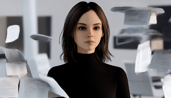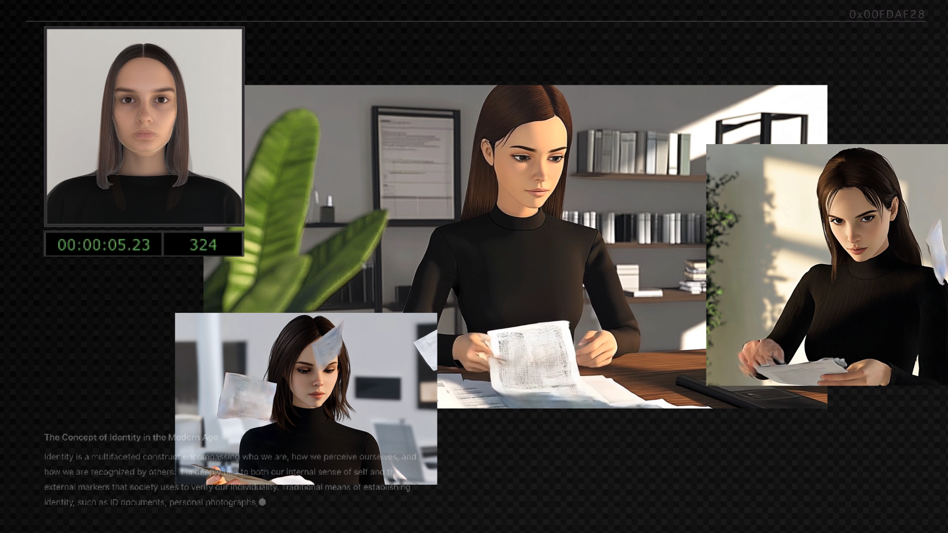 For this section of the film I generated several visuals of virtual characters, both as portraits and in an office setting. These last ones are animated using image-to-video tools.
