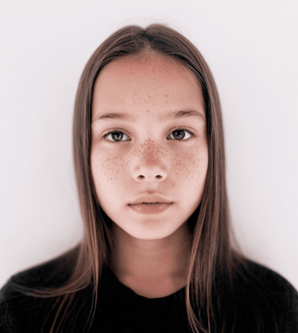 With a portrait photograph as starting point, I generated several images through Stable Diffusion, each with slightly tweaked features. The features can be fine-tuned to achieve different results, for example more child-like or more masculine traits.