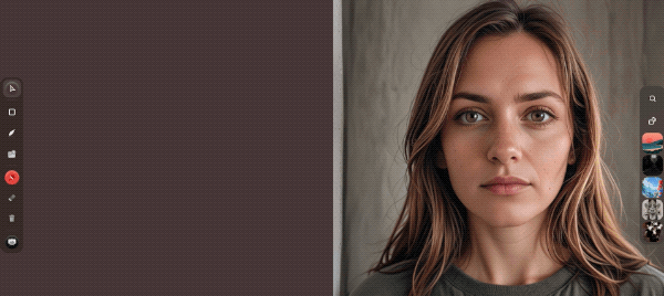 For the portrait sequence towards the end of the film I used the realtime feature from krea. This allows to generate images based on a text prompt and a visual input, like basic drawings or screen captures.